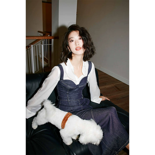 【Basic】スリムルックスクエアネックサスペンダードレス